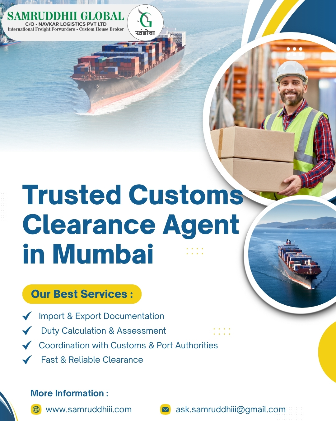 Ensure smooth and hassle-free import and export operations with Samruddhii Global, a leading Customs Clearance Agent in Mumbai. Our experienced professionals handle all documentation, duty assessment, and port formalities efficiently, helping you save time and avoid delays.